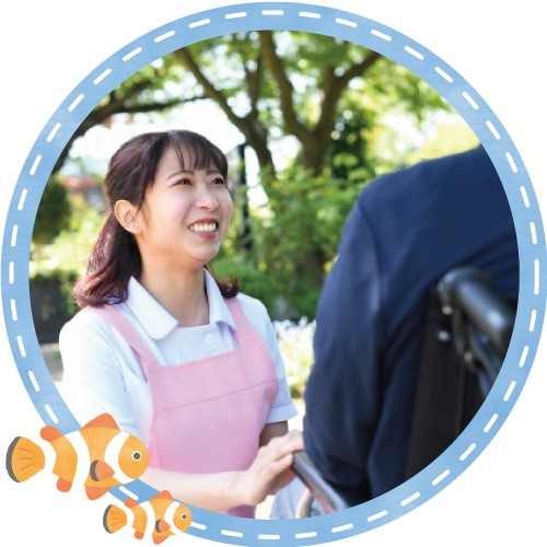 ホームヘルパーなどのスタッフが、ご自宅を訪問して必要なサービスを行います。食事や排せつなどの介助を行う「身体介護」、調理や掃除などを行う「生活援助」をはじめ、ご自宅での生活に関するサービスや日常生活でのアドバイスをいたします。